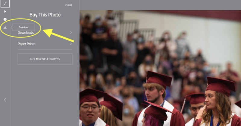 A link has been sent via text to you to view your senior's graduation photos. To download these photos for FREE be sure to click the download icon. DO NOT click on the link that says downloads. Please see photos below.