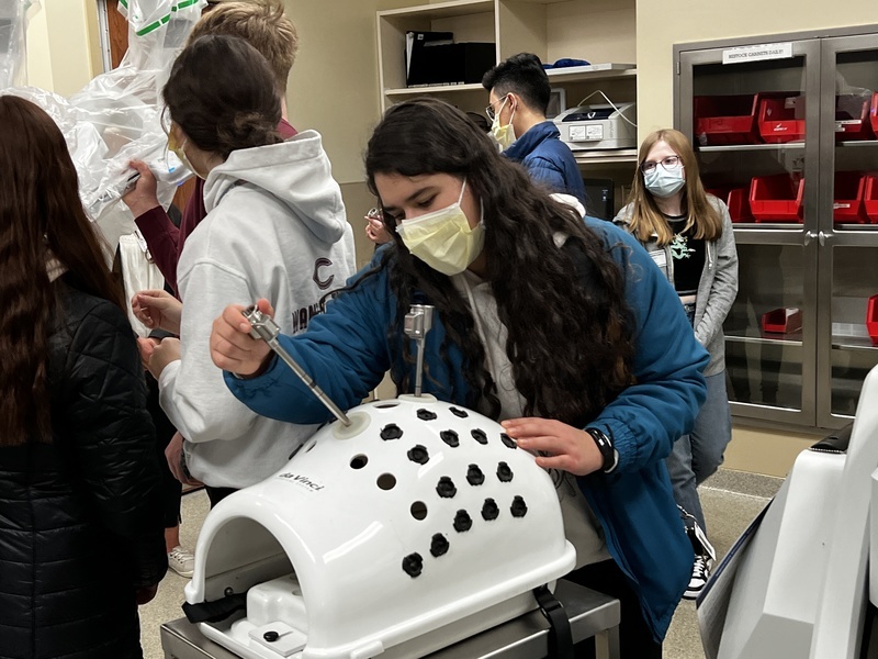 Last week, CHS students got the opportunity to learn about and experience Columbus Community Hospital's cutting edge surgical da Vinci® Robot through hands-on interactive demonstration. Students learned the benefits of robot assisted surgeries and an overview of the engineering behind the robot's design.