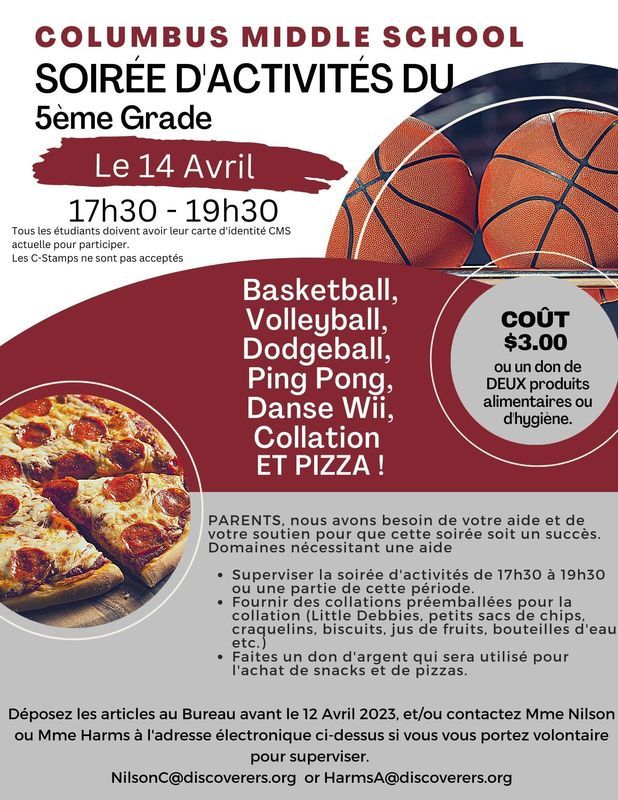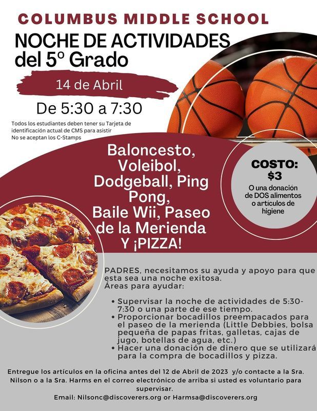 5th Grade Activity Night is coming up on Friday, April 14th!