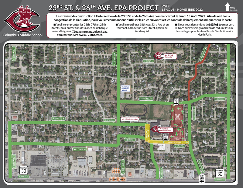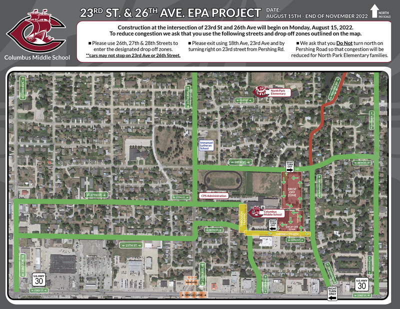 Construction at the intersection of 23rd St and 26th Ave will begin on Monday, August 15, 2022. To reduce congestion we ask that you use the following streets and drop off zones outlined on the map.