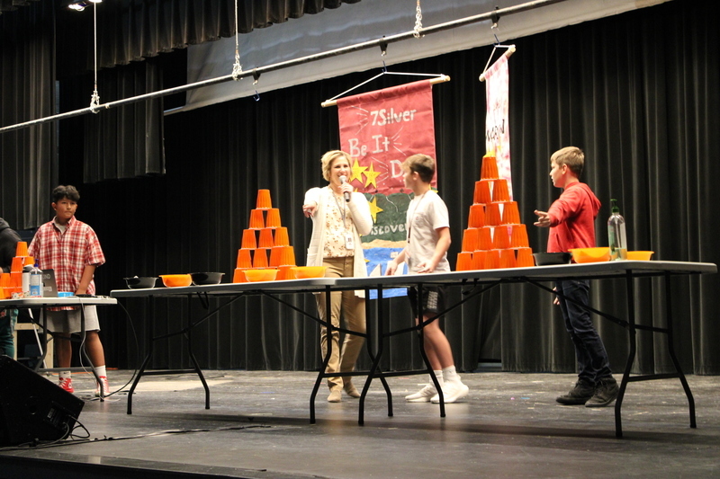 At the end of each quarter we enjoy coming together to celebrate our successes from the entire quarter. We recognize a student of the quarter from each subject area. We also recognize our athletics and activities from that quarter. We have a little fun as well with some Minute-To-Win-It challenges. We end every pep rally with the school fight song along with a cheer challenge. Parents are always welcome to come and celebrate with us. The schedule is as follows: